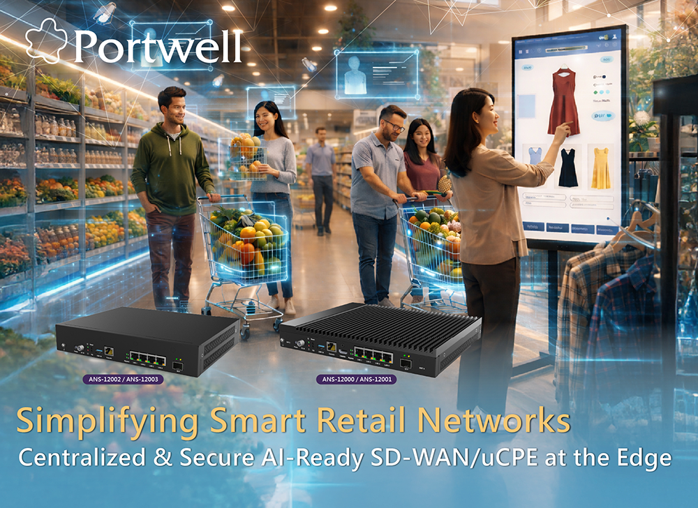 The Portwell ANS‑12000 Series delivers a robust, future-ready SD‑WAN/uCPE hardware foundation for smart retail deployments. By combining Intel Atom® x7000RE/x7000C processors with integrated Intel® DL Boost and AVX2 for local AI inference, high-speed resilient networking, flexible wireless expansion, and industrial-grade reliability, the platform addresses the real-world challenges faced by modern retail chains. It empowers retailers to securely connect distributed stores, deploy edge AI applications, and centrally manage networks at scale—while reducing costs and enhancing customer experience.
