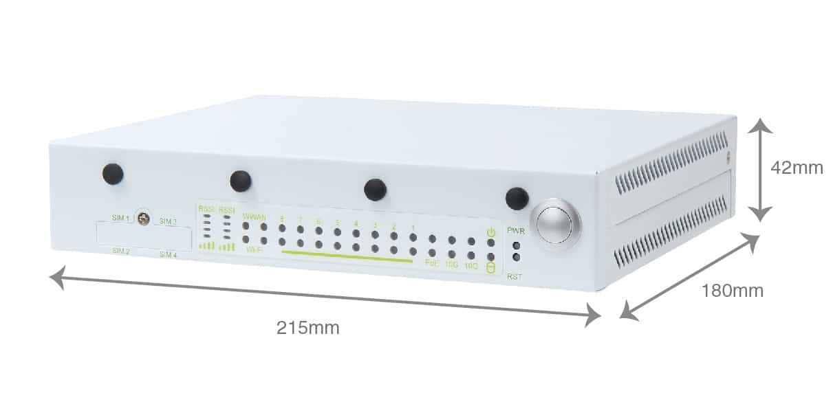 • 2x 10Gb SFP+, 2x GbE RJ45, 2x GbE RJ45 PoE+, 4x Combo Ports
