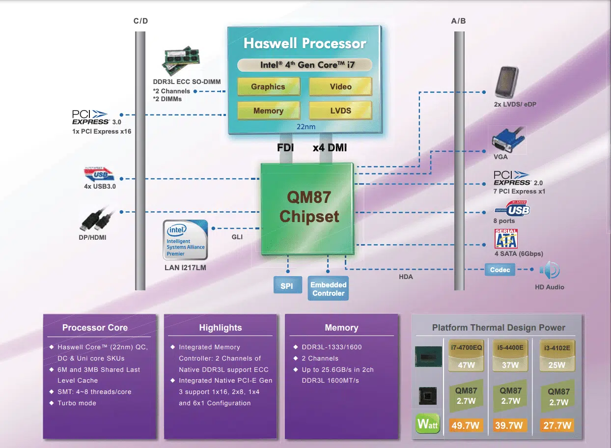 | AB1-3A01 | Shark Bay QM87, Type 6, ECC Core i5 i5-4402E (2C, 1.6GHz, 25Watts) |
