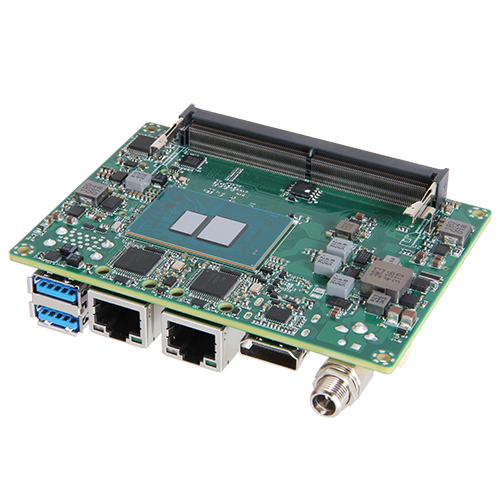 • 1x HDMI® 2.0 , 1x LVDS, 2x GbE, 2x USB 3.2