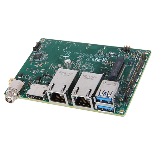 Intel® Twin Lake N150 & Amston Lake x7433RE/x7211RE; LPDDR5 up to 16GB; 1x M.2 2242 M-Key; 2x GbE, 2x USB 3.2; 1x HDMI® 1.4; GPIO, TPM 2.0; 12V DC