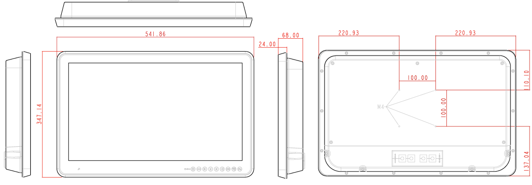 | Touch Screen | Full flat projective capacitive touch panel / Light Transmission: >85% / Hardness: 6H pencil, pressure 765g/45° / Life: ≥50,000 times | |