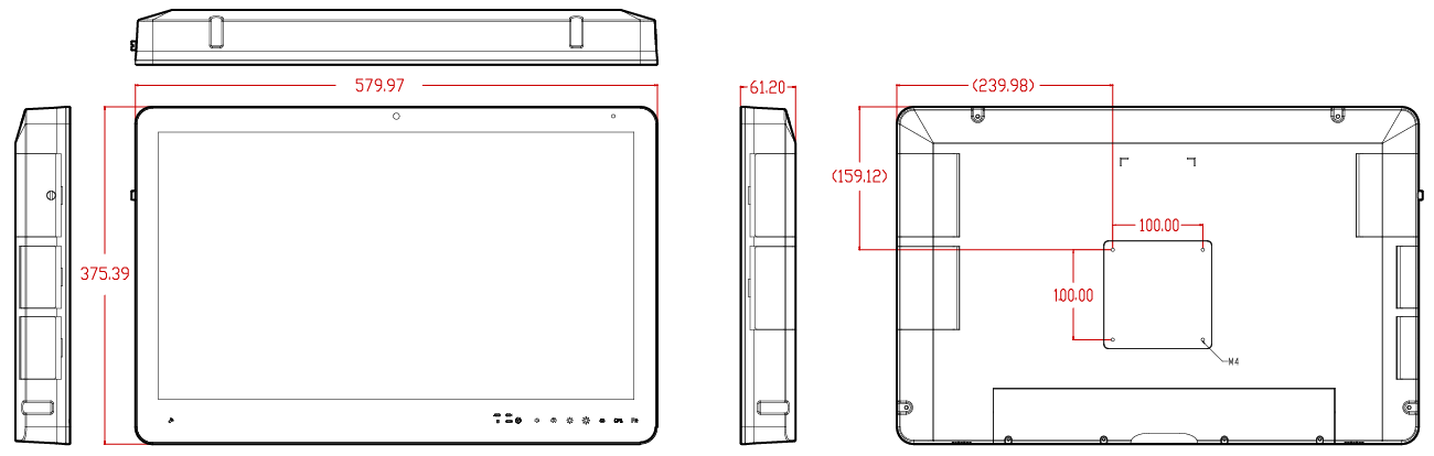 580.0 mm(H) x 375.4 mm(V) x 61.2 mm(T) |