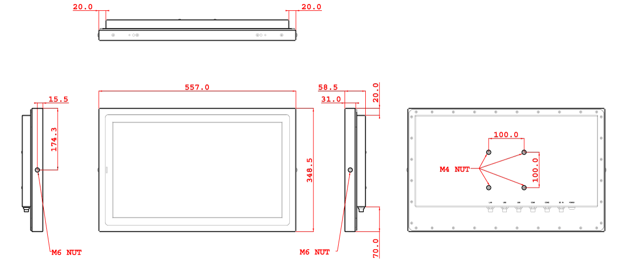 | Dimensions (Net) | 557 mm (H) x 348.5 mm (V) x 58.5 mm (T) | ||